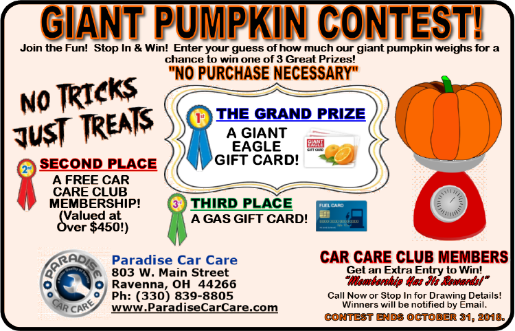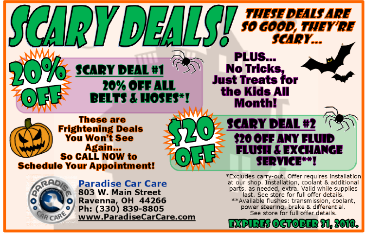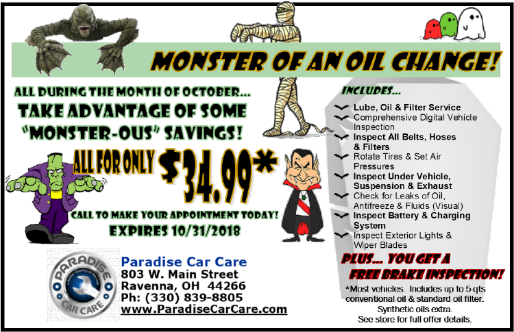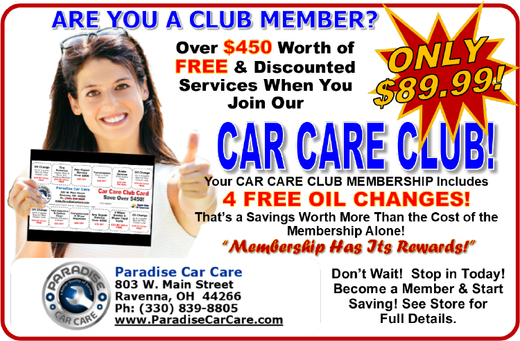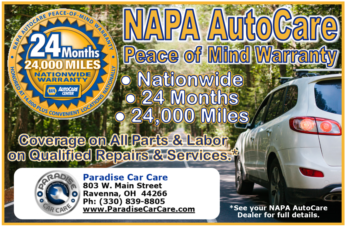 PARADISE CAR CARE    803 W Main St., Ravenna OH 44266    Ph. (330) 839-8805